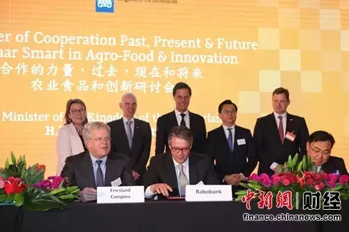 3月25日,正在中国访问的荷兰首相马克·吕特(Mark Rutte)在上海见证了荷兰合作银行与中荷奶业发展中心签约,这标志着中荷乳业合作迈上一个新的台阶。荷兰合作银行成为继荷兰皇家菲仕兰公司、荷兰瓦赫宁根大学、荷兰育种公司CRV之后,中荷奶业发展中心第四个荷兰伙伴。菲仕兰大中华区董事长兼首席执行官邱肇祥、荷兰合作银行全球国际客户部副总裁 Eric Saris等与荷兰首相一起见证了双方签约。